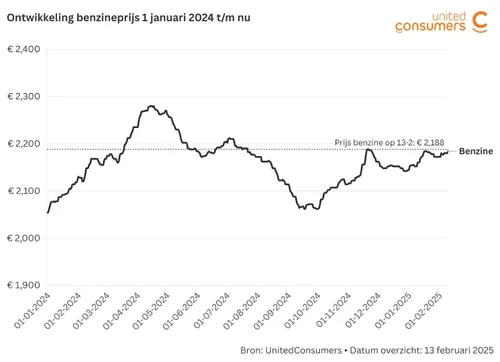 Ten opzichte van oudejaarsdag (31 december 2024) steeg de benzineprijs al bijna vijf cent. Dus voor wie vaak moet tanken, is 2025 tot nu toe een duur jaar. Wie bijvoorbeeld gemiddeld 40 liter benzine per week tankt, is bij dit prijsverschil zo’n 2 euro duurder uit per volle tank. Per jaar komt dit neer op 100 euro meer brandstofkosten, zo laat een snelle rekensom zien.